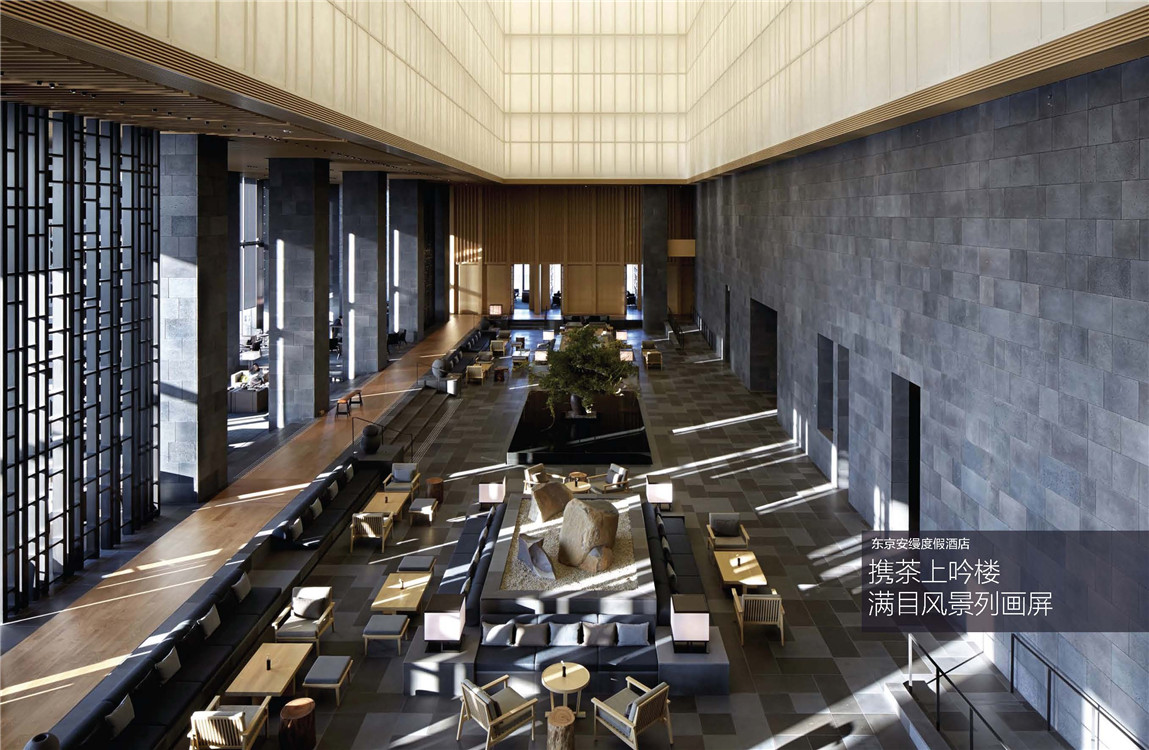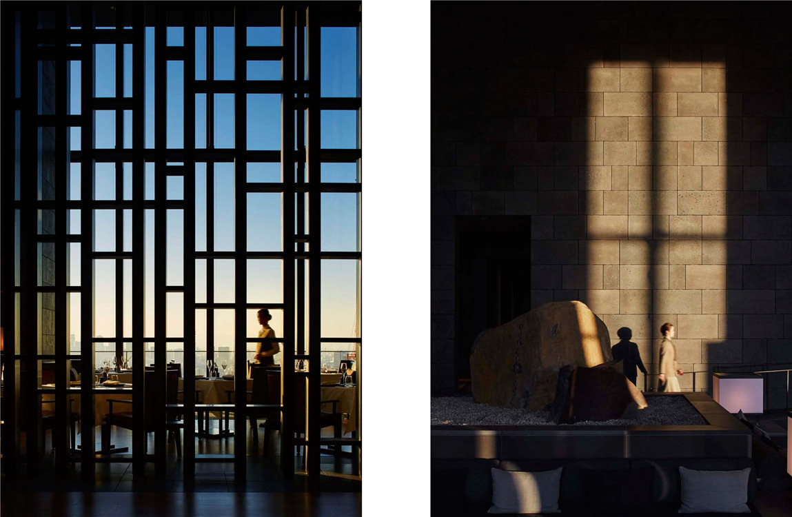 東京安縵酒店是以建筑室內設計與當地建筑文化的和諧統(tǒng)一為設計思路,通過一系列獨特的構成元素,將傳統(tǒng)和韻完美地融入現代風潮中,巧妙地展示自身特色。大量的光線搭配經典日式材料,如樟木、和紙及山石的運用,融入現代科技,通過各種各樣的織品和材質形成令人不可思議的明暗互動——成為此空間設計和氛圍營造的關鍵。木、紙、山石自然材料的運用,喚起了人們對樸實自然的追求,并營造了“簡素、自然”的禪宗意境。
