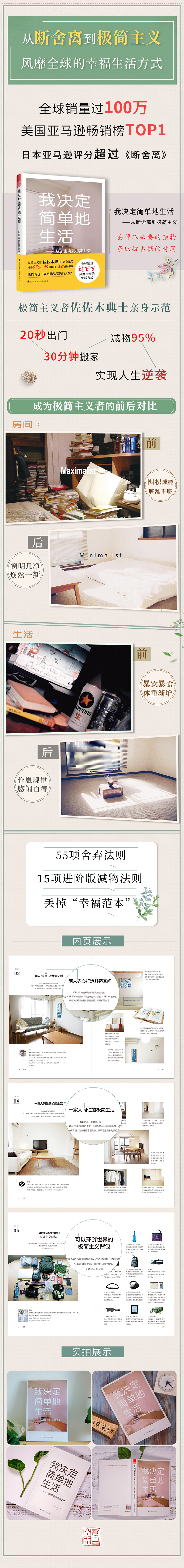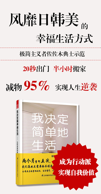 不!人,其實(shí)有更好的選擇。這本書所傳達(dá)的極簡主義理念,就是要告訴我們“減物”生活的美妙。從斷舍離到極簡主義,跟無限制的物欲保持距離,讓我們重新開始思考幸福的真諦。