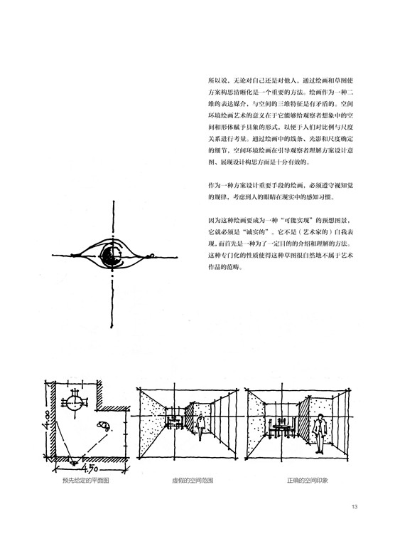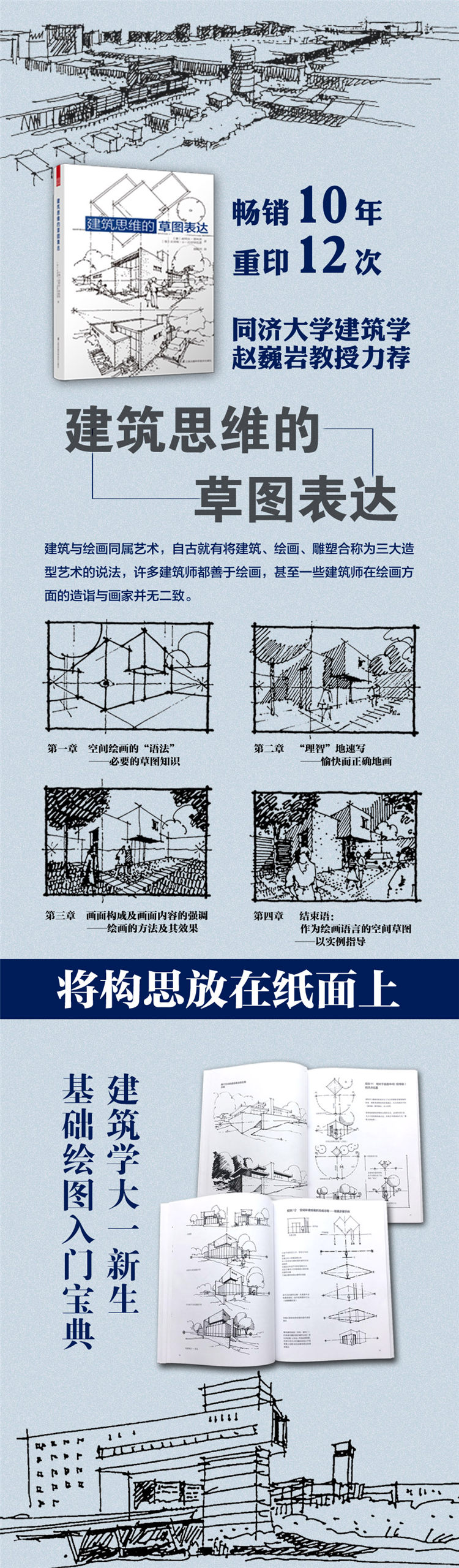 但建筑師有一種獨(dú)特繪畫方式,不是對(duì)已有建筑的表達(dá),而是對(duì)從無(wú)到有、無(wú)中生有的建筑的表達(dá),在建筑師的創(chuàng)造性活動(dòng)中,不斷地需要將頭腦中的構(gòu)想圖形化,形體、空間,甚至場(chǎng)地氛圍都需要通過(guò)這樣的圖畫來(lái)進(jìn)行表達(dá),因?yàn)檫@是一種呈現(xiàn)設(shè)計(jì)意圖的最為便捷的方式,這是獨(dú)屬于建筑師的一種繪畫方式。本書就介紹了這樣一種繪圖的方式,在作者循序漸進(jìn)的教導(dǎo)中,初學(xué)者會(huì)發(fā)現(xiàn),掌握這樣一種繪畫方式,既非毫無(wú)規(guī)律可循,又是一件饒有興趣的事情,即使是在電腦技術(shù)飛速發(fā)展的今天,這種繪畫方式仍舊是建筑思維表達(dá)的最為有力的方法之一。
