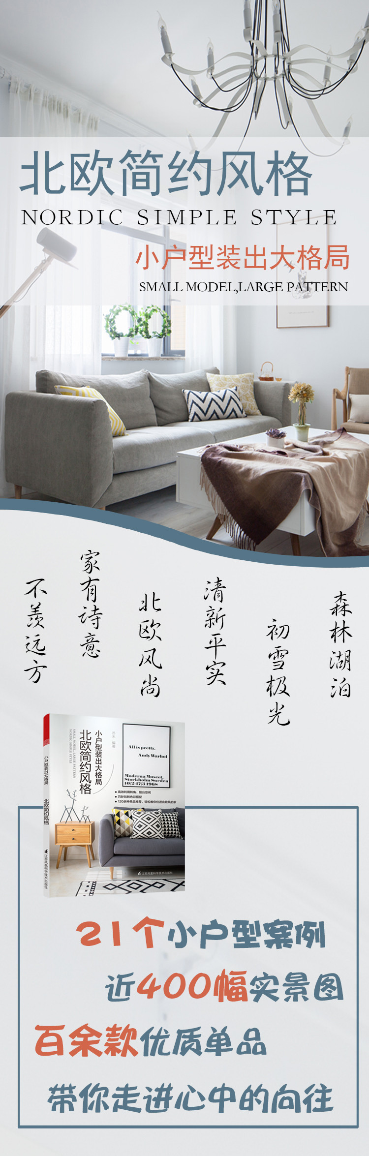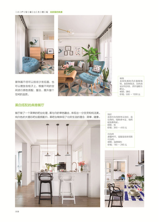 本書是一本實用型小戶型家裝參考書,精選國內一線設計工作室的21個優秀的北歐風格的實景案例,每套案例一個主題,并配有戶型圖解析和設計理念介紹。編者從室內設計的專業角度分析了小戶型的裝修特點,并從軟裝、色彩、材料、住宅的功能分區、收納儲物等角度全面講解了在小戶型裝修過程是怎樣合理規劃空間布局和從視覺、功能使用上增大空間面積。全書案例詳細說明了所用的主要裝修材料和設計要點,全方位講解北歐簡約風格的裝修理念,并對案例中出現的北歐風格單品做以簡單介紹,實用性非常強。