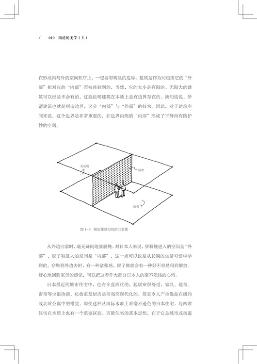 蘆原義信同時(shí)有東方和西方教育和工作的背景,在書中對(duì)比了日本、意大利、法國(guó)等歐洲國(guó)家的建筑環(huán)境和街道、廣場(chǎng)等外部空間,做了深入細(xì)致的分析。歸納出東西方在文化體系、空間觀念、哲學(xué)思想以及美學(xué)觀念等方面的差異,并對(duì)如何接受外來(lái)文化和繼承民族傳統(tǒng)問題,提出了許多見解。