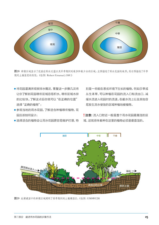本書(shū)分成三大部分:第一部分主要講述了雨水花園的概念。第二部分主要介紹雨水花園建造與維護(hù)方法等,包括從選址到土壤評(píng)估再到種植,最后到管道引流等方面。第三部分通過(guò)國(guó)內(nèi)外優(yōu)秀項(xiàng)目的展示,結(jié)合精美的圖片和詳細(xì)的描述性文字,讓讀者能在實(shí)際成品中進(jìn)一步了解雨水花園的作用。