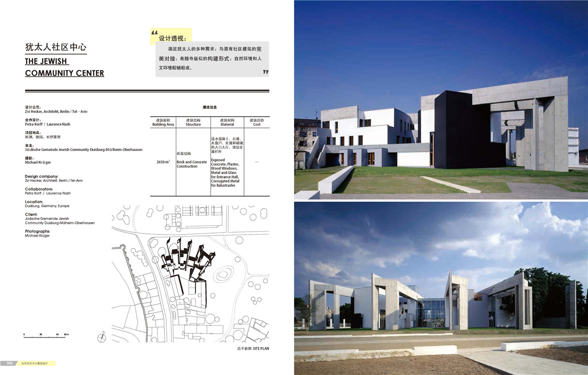 進入21世紀以后,以工作單位為紐帶的鄰里關系在轟轟烈烈的城市改擴建過程中逐漸淡化,人與人之間的關系日漸疏離,在以商業住宅為主要居住模式的今天,住宅社區成為社會構架的基礎單元,而重建融洽互助的鄰里關系就成了社會和諧的重要保障之一。本書在此背景下應運而生,通過對社會背景、社區中心的由來及發展等研究的介紹,讓讀者更能切身體會到社區中心應居有的實用功能。并通過二十余個國內外的典型案例,展現出社區中心的設計細節、功能規劃、材料選用、費用評估等信息。