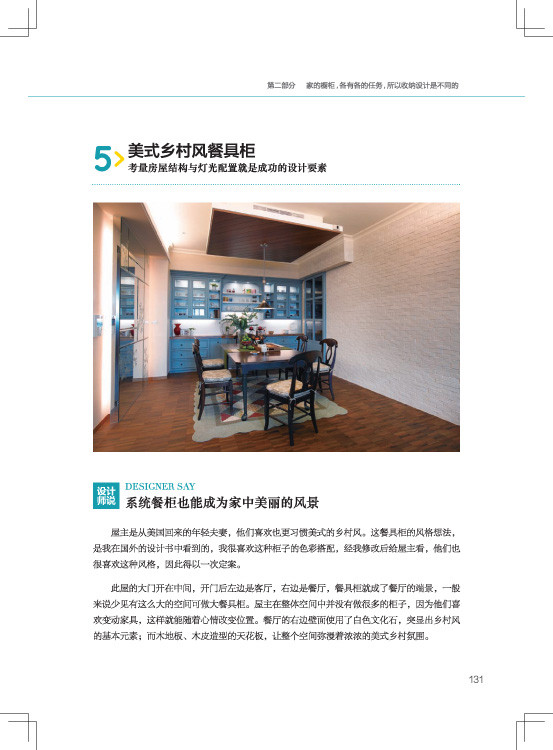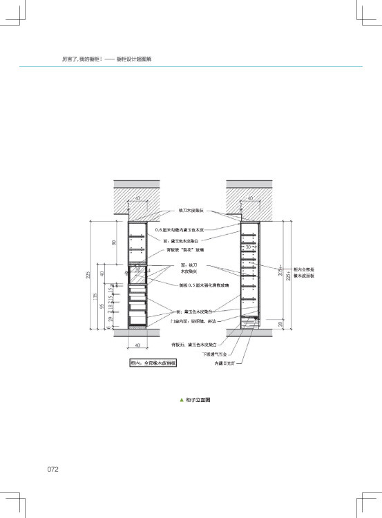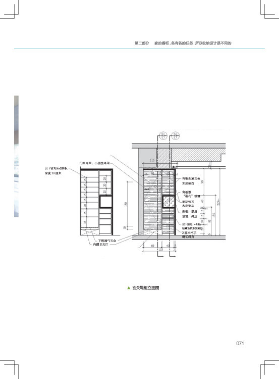 當(dāng)你看到美麗的柜子,你是否有思考過它是如何施工并制作出來的?柜子、框架和門扇為什么要這樣搭配?入柱和蓋柱又有什么不同?許多細(xì)節(jié)將在這書中以剖、立面施工圖的形式完整呈現(xiàn),同樣的柜體因不同的木皮搭配及空間色彩不同就會(huì)產(chǎn)生不同的風(fēng)格。書中也收錄過去許多的經(jīng)典設(shè)計(jì)案例,每個(gè)柜子的外觀都是具有特色的,內(nèi)部功能收納也都是合乎空間需求的。