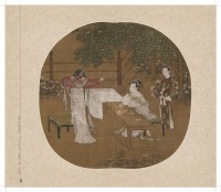 宋代的團(tuán)扇是宋代院體中發(fā)展出來(lái)的具有一定實(shí)用性、裝飾性、雅俗共賞的小幅繪畫(huà)作品。到了后期,已經(jīng)不僅僅以實(shí)用為目的,而向更具有觀賞性、藝術(shù)性的裝飾品靠攏,為了滿足帝王賞閱的需求,團(tuán)扇經(jīng)拆裱制成冊(cè)頁(yè)形式。實(shí)物今天尚能見(jiàn)到,尤其是宋代的繪畫(huà)作品,保存至今的有相當(dāng)一部分是畫(huà)在團(tuán)扇上的,且不乏出自名家之手。由于年代久遠(yuǎn),這種團(tuán)扇畫(huà)多為絹本扇頁(yè)的形式出現(xiàn)。扇面入字入畫(huà),使人賞心悅目,給人以美的享受。欣賞扇面書(shū)畫(huà)務(wù)須細(xì)細(xì)品味,慢慢咀嚼其中的藝術(shù)意蘊(yùn)。宋代的團(tuán)扇畫(huà)對(duì)之后的元、明、清乃至近、現(xiàn)代都有深遠(yuǎn)的影響,它的意蘊(yùn)、風(fēng)格和技藝一直延續(xù)著其獨(dú)特的魅力。時(shí)至今日,歷經(jīng)上千年,宋代團(tuán)扇畫(huà)也依然能夠滿足現(xiàn)代人的審美訴求。