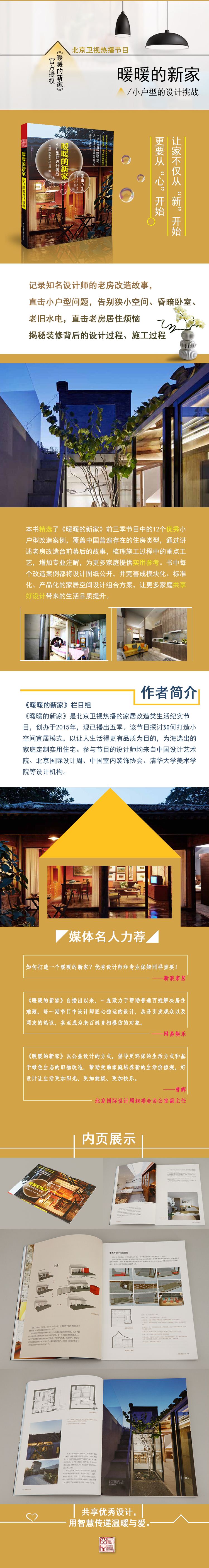 本書呈現(xiàn)了北京衛(wèi)視大型家裝類改造節(jié)目《暖暖的新家》欄目第三季的精彩內(nèi)容,每一期內(nèi)容都由各期的編劇講述12個家庭在裝修改造中發(fā)生的溫暖人心的故事以及改造施工的細(xì)節(jié)。這十二期內(nèi)容分別是,北京遇上米蘭、充滿回憶的家、零通風(fēng)零采光的家、珠峰腳下的家、讓媽媽回家、我家有棵樹、編織大叔的幸福之家、住在柜子里的家、零家具跨國之家、胡同里的我們仨、毛猴之家、時光天梯。
