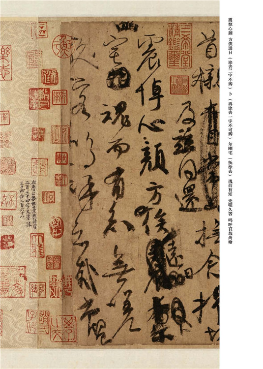 《祭侄文稿》,又稱《祭侄季明文》,顏真卿書,時年五十,自署書于乾元元年( 公元758年)九月三日。麻紙本,行草書,文稿一篇,凡25行,計334字,縱28.16 厘米橫72.32厘米,現(xiàn)藏于臺北故宮博物院。