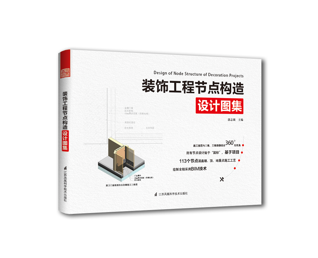 本書作為裝飾企業工具書, 系統地介紹了室內裝飾過程中的工藝工法, 目的是幫助設計師提升制圖水平和工作效率。本書使用B I M 技術,從分部分項工程角度進行闡述,不僅滿足二維圖紙的表達深度,同時利用B I M 的可視化,對工藝工法進行三維設計節點展示。書中尺寸除注明者外,均以毫米(mm)為單位。