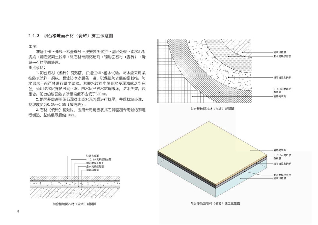 2.1.3 陽臺樓地面石材(瓷磚)施工示意圖