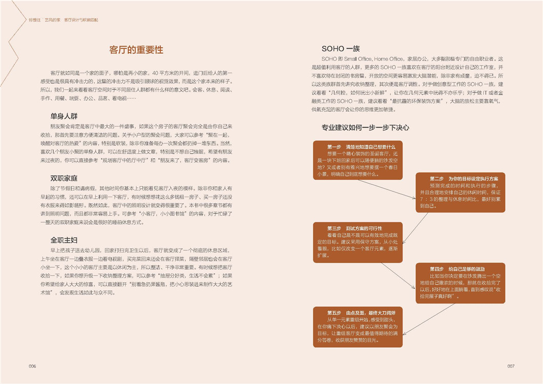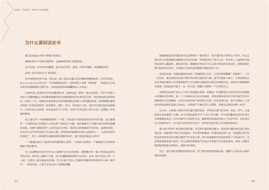 真正的家是讓你舍不得離開的地方。健康的客廳不僅要住的舒服,還能夠得到身心的愉悅感。這不僅是一本關于收納整理、室內設計的書,更是一本調節情緒、深度懂你的書。由于物質條件的豐富,我們這一輩人更加注重自己的情緒和精神世界。正因為如此,“少即是多”比以往任何一個時候都更加流行,也有很多人選擇“斷舍離”,梳理自己與物品的關系是需要極大勇氣的,當然也能夠帶來顛覆性的人生體驗。客廳是非常重要的家居空間,這本書是解決你客廳問題的一把鑰匙。