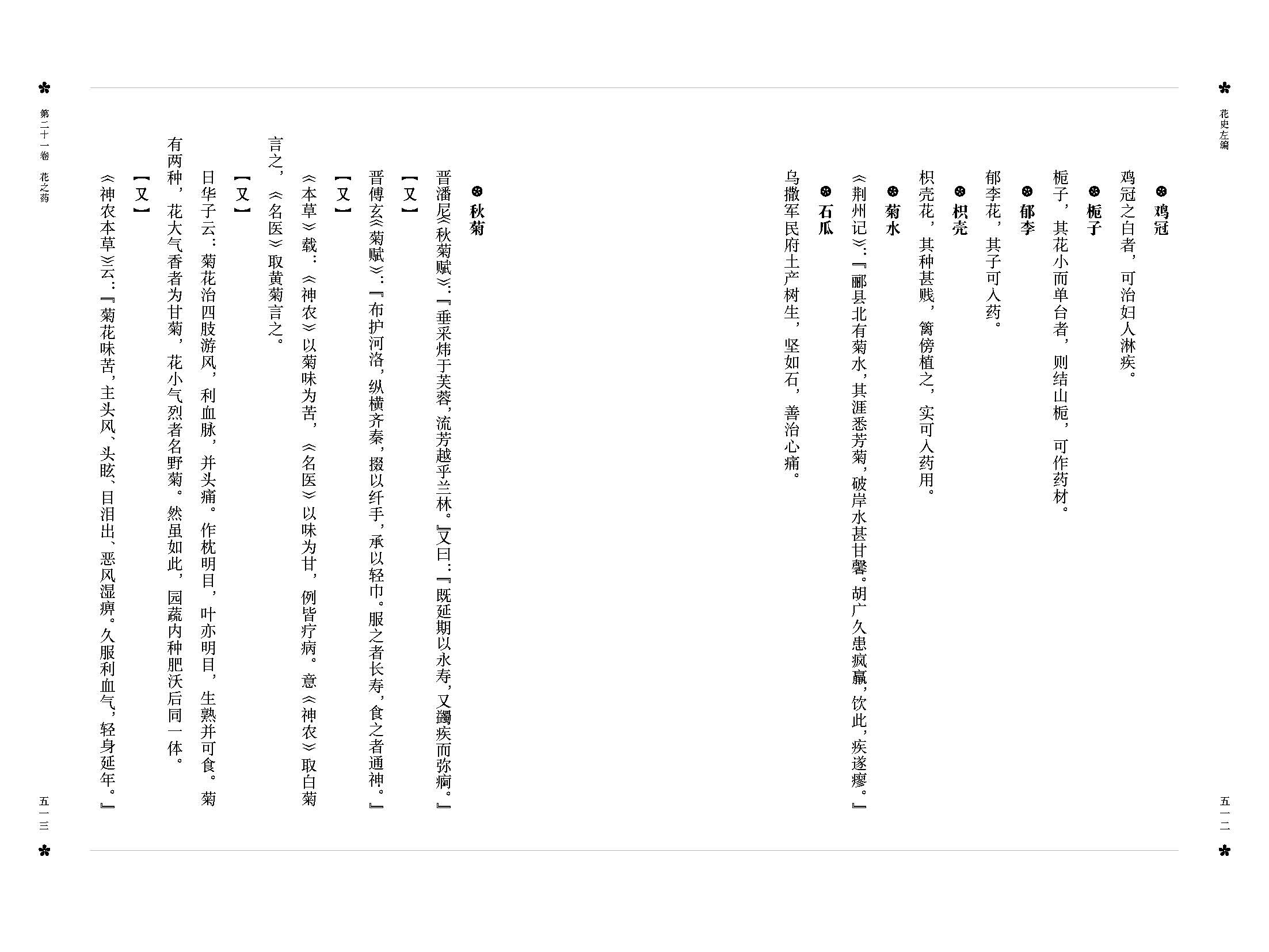 因此,本書內(nèi)容共二十七卷,內(nèi)容豐富,是研究中國(guó)古代花卉的重要資料。