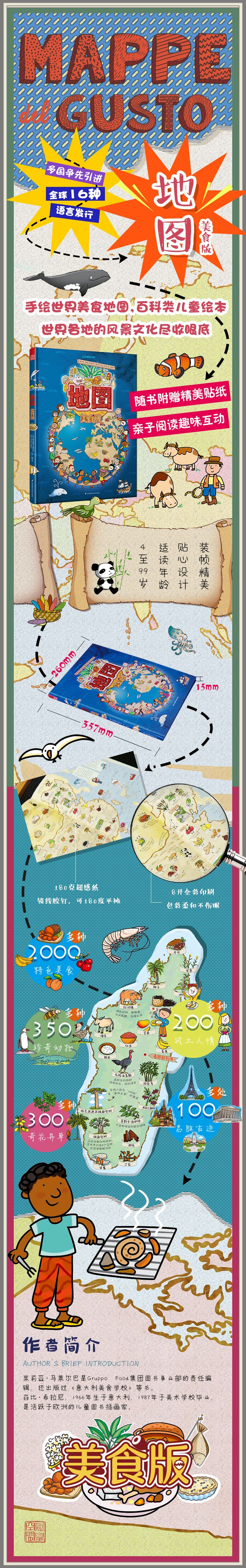本書通過可愛的插圖,引導讀者去探索發(fā)現(xiàn)六大洲的美食配方:北美洲、南美洲、歐洲、亞洲、非洲和大洋洲。每個大洲都配有一幅總的地圖,并標有其主要產(chǎn)品的概述。書中還為39個重點國家單獨繪制了美食地圖,對這些重點國家的典型食物一一進行介紹,通過對世界不同國家的食物進行探索,讀者可以享受到探索的樂趣,從中發(fā)現(xiàn)世界各地的差異性。在探索美食的同時,讀者還能了解到世界各地的動物、植物、山川、河流、風俗及奇趣見聞。這是一場老少皆宜的冒險,讓我們通過食物這一媒介,跟隨作者一起來領略世界各地的不同文化特色。