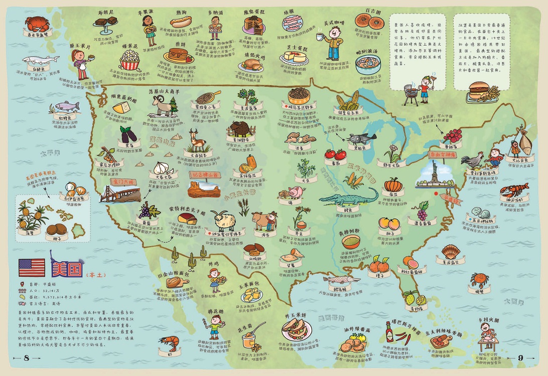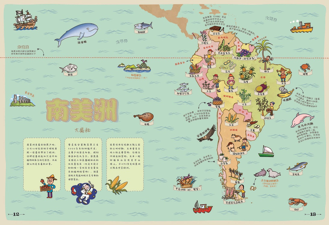 本書中食物地圖介紹了全球部分國家或地區(qū)的農(nóng)作物、動物、土特產(chǎn)及獨特的美食配方。動物、植物會打破國與國之間的劃分界線,你還會發(fā)現(xiàn)獨特的美食是除國界線外,區(qū)分國與國之間的更具代表性的事物。