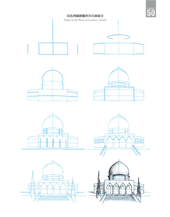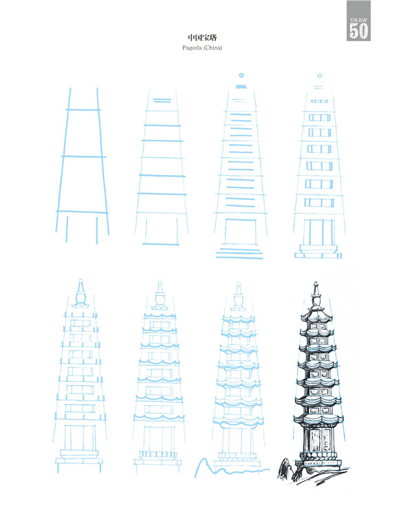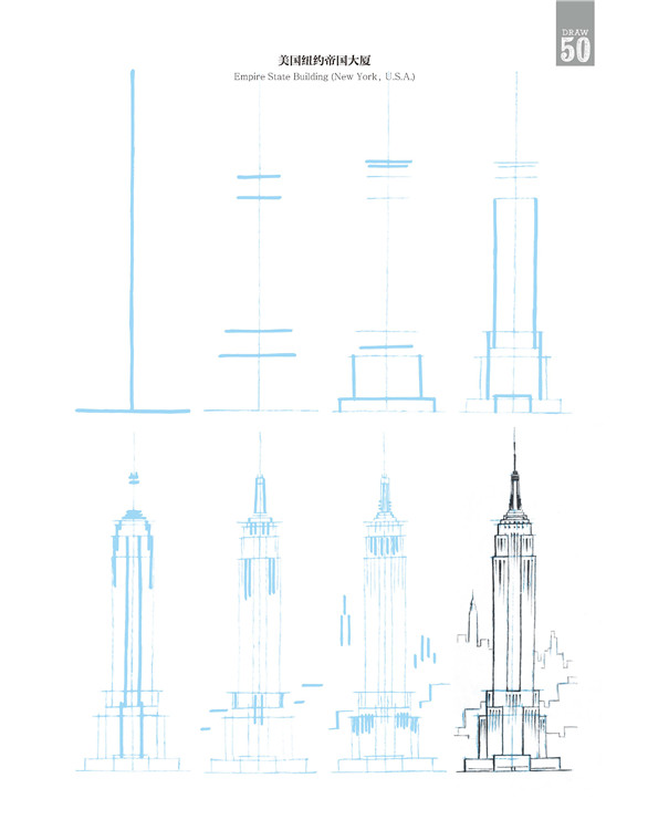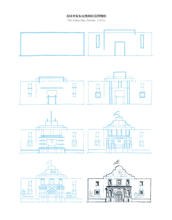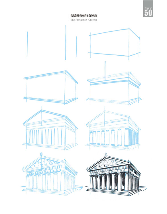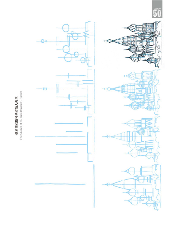 在這本書中,有些建筑極其珍貴少有,它更像一個筆尖上的世界建筑博物館。比如美國紐約帝國大廈、意大利比薩斜塔、英國倫敦大本鐘、印度泰姬陵,當然也有諸如瑞士小木屋、中國寶塔,甚至還有俄羅斯莫斯科圣羅勒大教堂、法國蘭斯大教堂、希臘雅典帕特農神廟、墨西哥瑪雅金字塔……