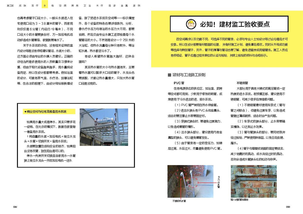 本書帶你建立對裝修工程監工驗收的基本認識:讓你根據自己的實際需求與狀況,找到適合的裝修材料與施工方法;講述常見的施工方式與完成效果,以及做完之后如何驗收,讓你和裝修師傅無障礙溝通;以圖解的方式簡化復雜的施工順序,詳細分解各工種的銜接點,讓你把握工期不費時。一準則一建議,列舉施工前必知、施工中常見錯誤、監工細節、驗收重點,讓你做到裝修全程心中有數。50項裝修案例,300個監工驗收細節提示,200條材料、工法解析,教你從菜鳥變身為裝修達人,監工、驗收一步搞定,不為將來留隱患。