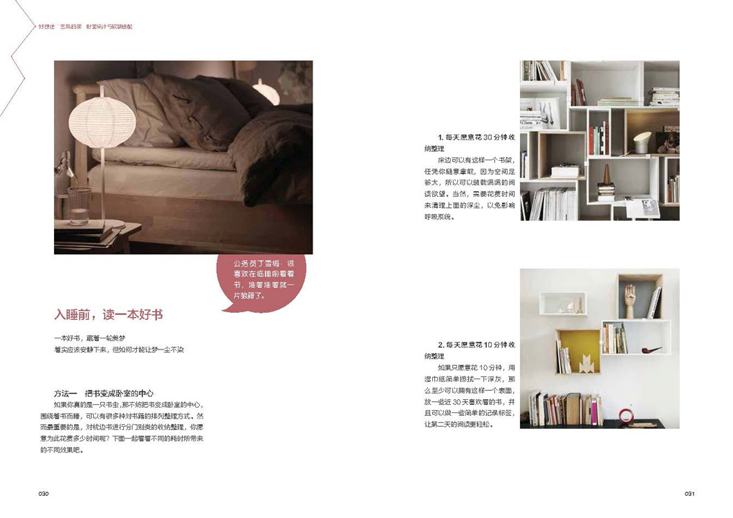 為什么我們喜歡坐在床上聊天?只有關(guān)系親密的人才可以一起坐在床上聊天。不知道大家是否有發(fā)現(xiàn),在床上溝通事情的成功率會(huì)高于在客廳溝通,這或許是因?yàn)楸舜酥g減少了防備,增加了信任,所以讓溝通的過(guò)程變得更加簡(jiǎn)單。這非常適用于夫妻之間的溝通,以及親子之間的溝通。你現(xiàn)在所閱讀的,不僅是一本傳遞收納整理技巧的書,也是一本呈現(xiàn)各種小情緒、小歡樂(lè)的書,在閱讀的過(guò)程中,你不僅可以與自己的日常生活形成共鳴,也能夠停下來(lái),靜一靜,重新整理好心情。在這個(gè)世界上每一個(gè)看似平淡、冷漠的個(gè)體其實(shí)都需要一個(gè)傾訴的出口。
