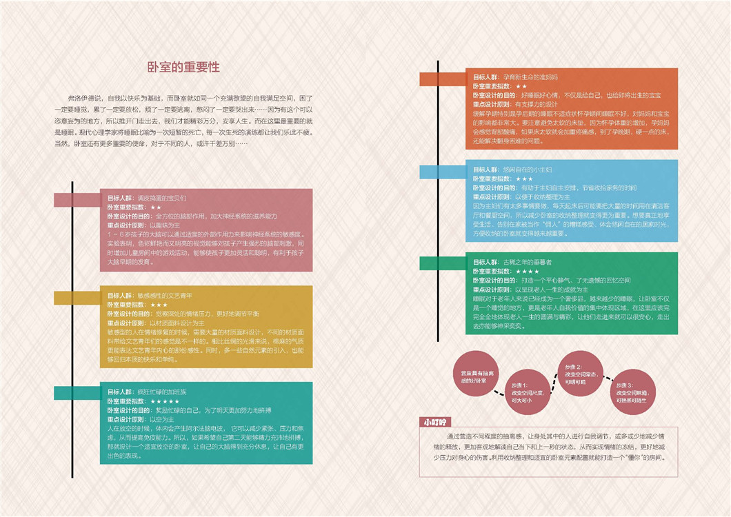 為什么我們喜歡躲在被窩里哭?因?yàn)槲覀兡芑氐阶畛鯆雰旱臓顟B(tài)。在原生家庭中沒(méi)有得到足夠呵護(hù)的人,成年以后往往缺乏安全感和信任感,設(shè)計(jì)一個(gè)柔軟、包覆而無(wú)傷害的臥室,并且多使用居住者熟悉的物品,長(zhǎng)久生活下來(lái)能夠彌補(bǔ)原生家庭養(yǎng)育的不足。我們每一個(gè)成年人都是歷經(jīng)傷痛才長(zhǎng)大的,失眠是對(duì)于生命的摧殘,而營(yíng)造一個(gè)呵護(hù)自己的臥室系統(tǒng),能夠修復(fù)成長(zhǎng)的偏差,緩解情緒煩躁和焦慮的狀態(tài),在良好的睡眠修復(fù)中,逐漸建立自己的溫和秉性,在未來(lái)的人生之路上更加積極樂(lè)觀地前行。