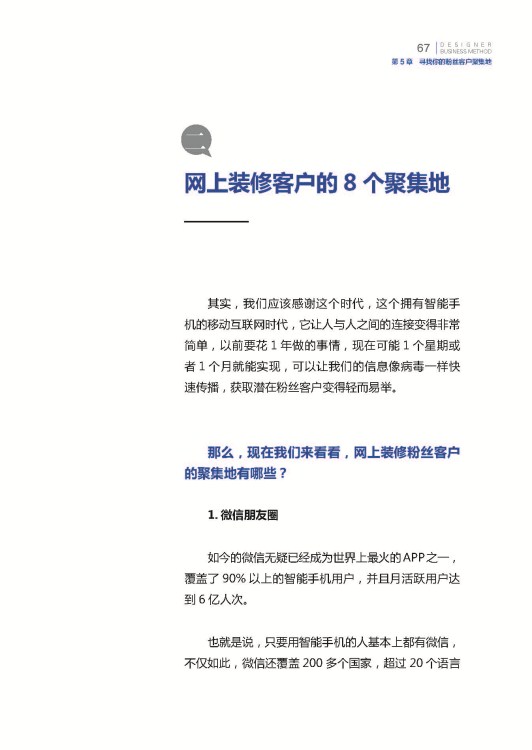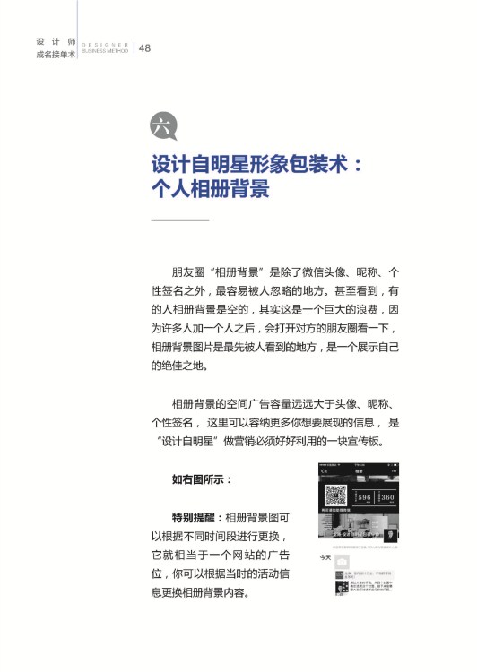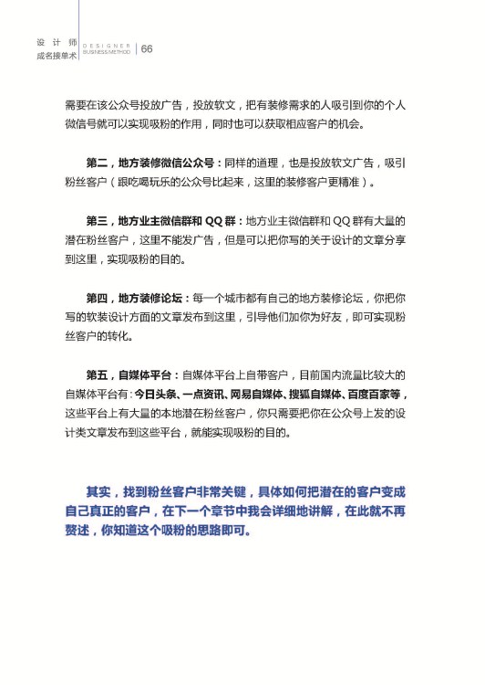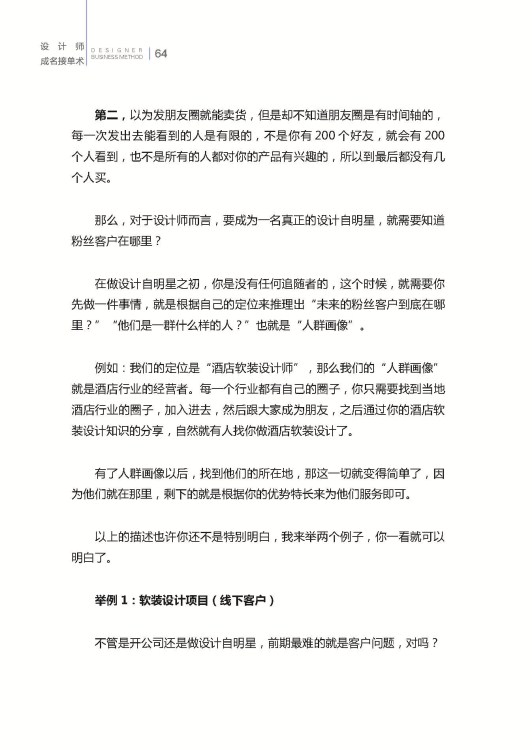 本書主要是通過講解如何用當下最有效的營銷工具(微信)和互聯網營銷方法論,幫助設計師實現自我營銷和成功簽單,快速打造設計師的行業知名度和影響力。