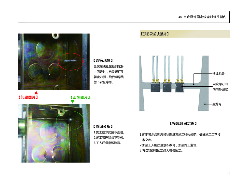 48 自攻螺釘固定線盒時釘頭朝內(nèi)