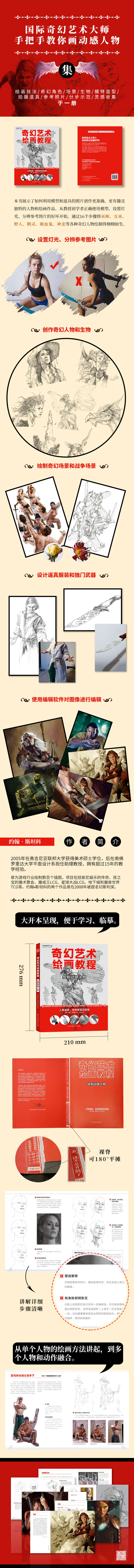●涵蓋內(nèi)容較為全面,包含奇幻藝術(shù)繪畫的多個方面:創(chuàng)作奇幻人物和奇幻生物、創(chuàng)造并繪制奇幻場景和戰(zhàn)爭場景、設(shè)計逼真的服裝和獨一無二的武器、選擇最佳的拍攝角度和燈光以及使用數(shù)字對圖像進(jìn)行編輯等內(nèi)容。