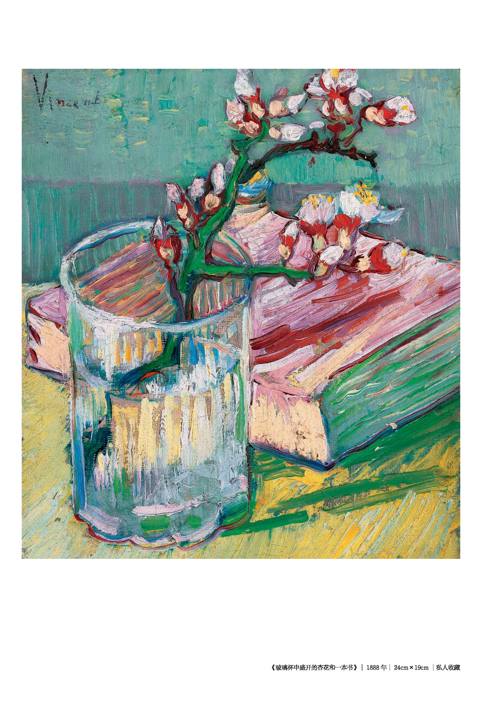 1《玻璃杯中盛開的杏花和一本書》