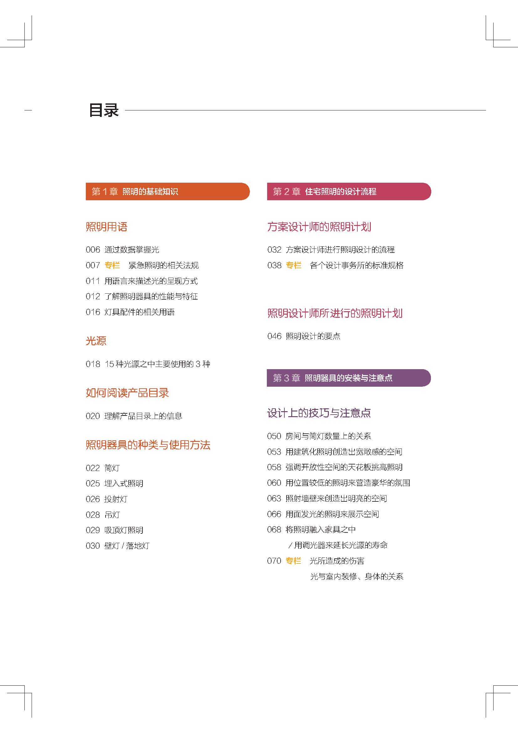 030 壁燈/ 落地?zé)?br /> 第2 章 住宅照明的設(shè)計流程