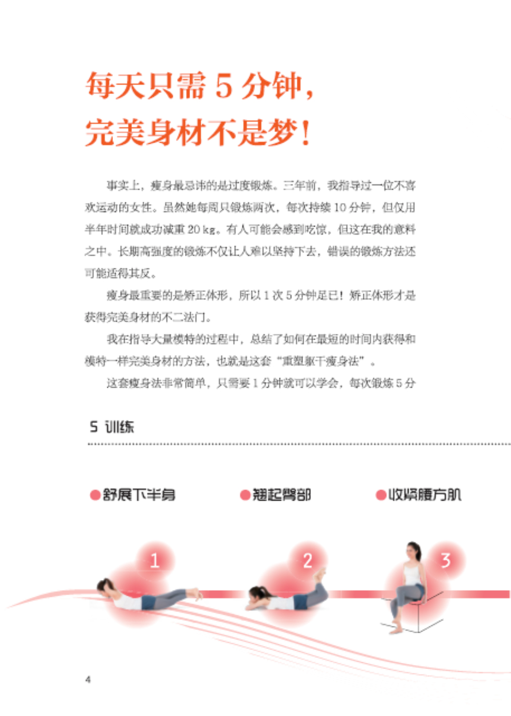 當(dāng)你看完這本精巧可愛(ài)的小書(shū),相信你就不會(huì)再將瘦身塑形想象為“洪水猛獸”而不敢付諸行動(dòng)了,每天5分鐘,5個(gè)動(dòng)作,堅(jiān)持兩周相信你會(huì)看到明顯變化。