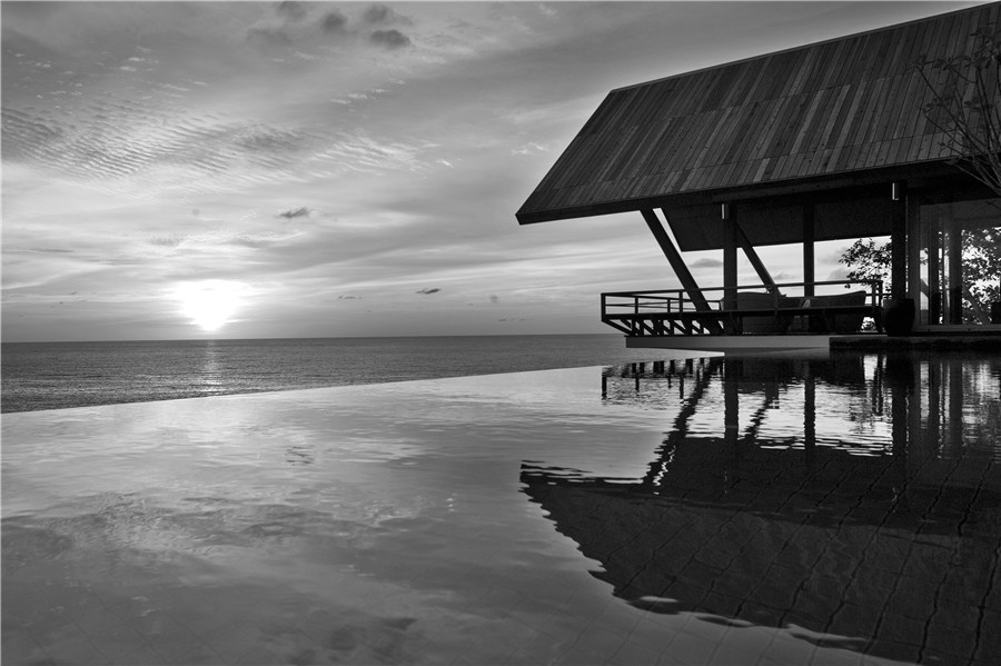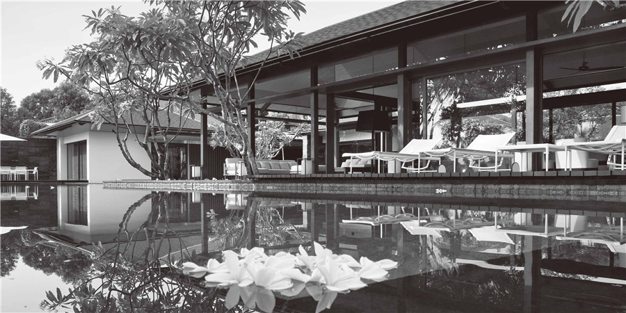 達(dá)曼海懸崖邊上。我們的視覺焦點(diǎn)在于這些別墅獨(dú)特的屋頂形式,以及這些屋頂對泰國文化背景的體現(xiàn)。位于新加坡納森路的住宅展現(xiàn)出私人性質(zhì)與公共性質(zhì)的二元性。在這里,娛樂空間和私人生活空間實(shí)際上被分割成兩棟獨(dú)立的建筑,隔街相對。兩棟建筑的建筑語言、規(guī)劃和空間表現(xiàn)形式就像兩位具有鮮明特征的兄妹。相比之下,位于印度尼西亞首都雅加達(dá)以南的武吉高爾夫?yàn)跛攧e墅的主題是水資源的利用。魚塘和游泳池等水景引領(lǐng)著游客開啟神奇的體驗(yàn)之旅,使他們