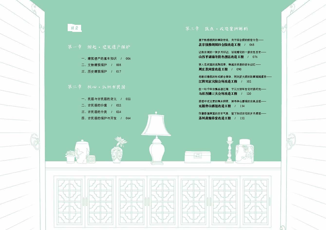 現(xiàn)在人們對(duì)古老的事物越來越有珍重感,因此對(duì)古民居進(jìn)行改造再利用也是趨勢(shì)所向。順應(yīng)目前古民居保護(hù)修復(fù)以及改造再利用的潮流,本書注重挖掘有歷史價(jià)值的古民居,案例部分主要選取舊時(shí)大戶人家的老宅進(jìn)行改造,透過對(duì)建筑自身特色的解讀,以及有針對(duì)性的改造方案和施工細(xì)部工法,給予作者啟發(fā)和參考性意見。