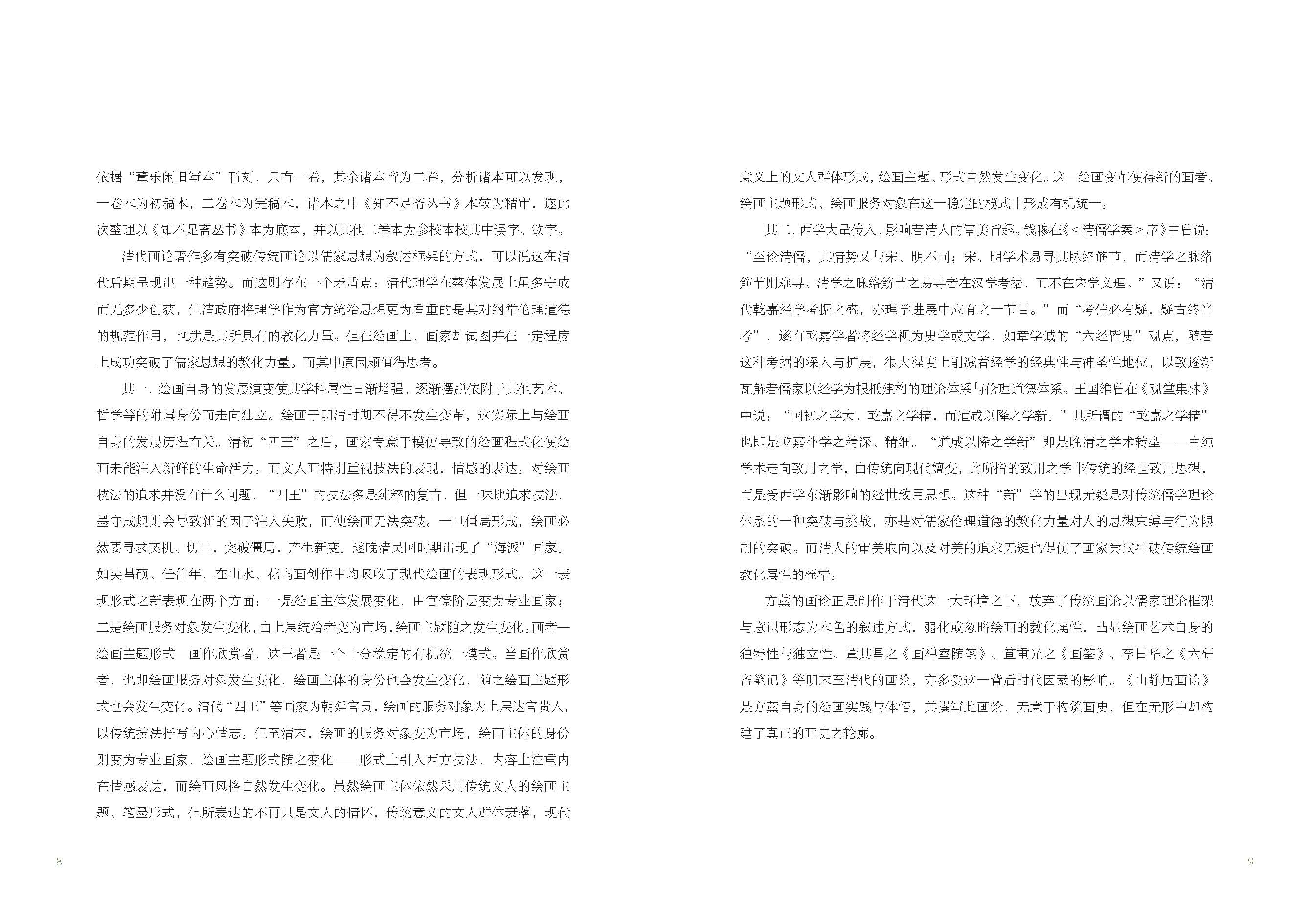 《山靜居畫論》為方薰晚年的著作,成于1780年前后。此畫論采用中國古代畫論較為通行的一種形式——隨感式雜錄形式編撰而成,沒有明確的體例。全書共兩卷,以隨筆形式論畫二百四十四則,上自晉唐,下至清初各家各派的風(fēng)格、技法、淵源,山水、花鳥、人物均有涉及。