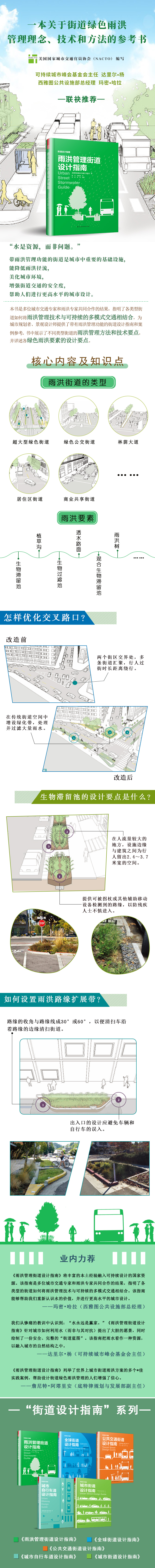 《雨洪管理街道設(shè)計(jì)指南》是美國(guó)國(guó)家城市交通官員協(xié)會(huì)“街道設(shè)計(jì)指南叢書”的第五本,將街道設(shè)計(jì)的核心放在如何進(jìn)行雨洪管理上。