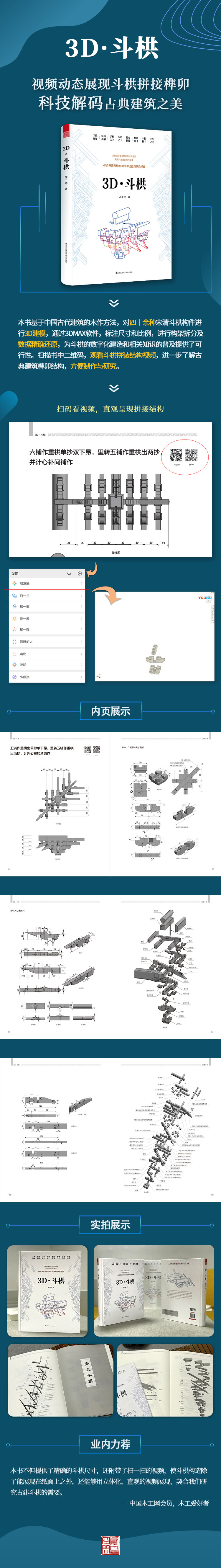 本書的亮眼之處還有通過掃描二維碼,可以觀看斗栱拼接視頻,通過直觀的方式為讀者呈現(xiàn)古典建筑的木構(gòu)之美。