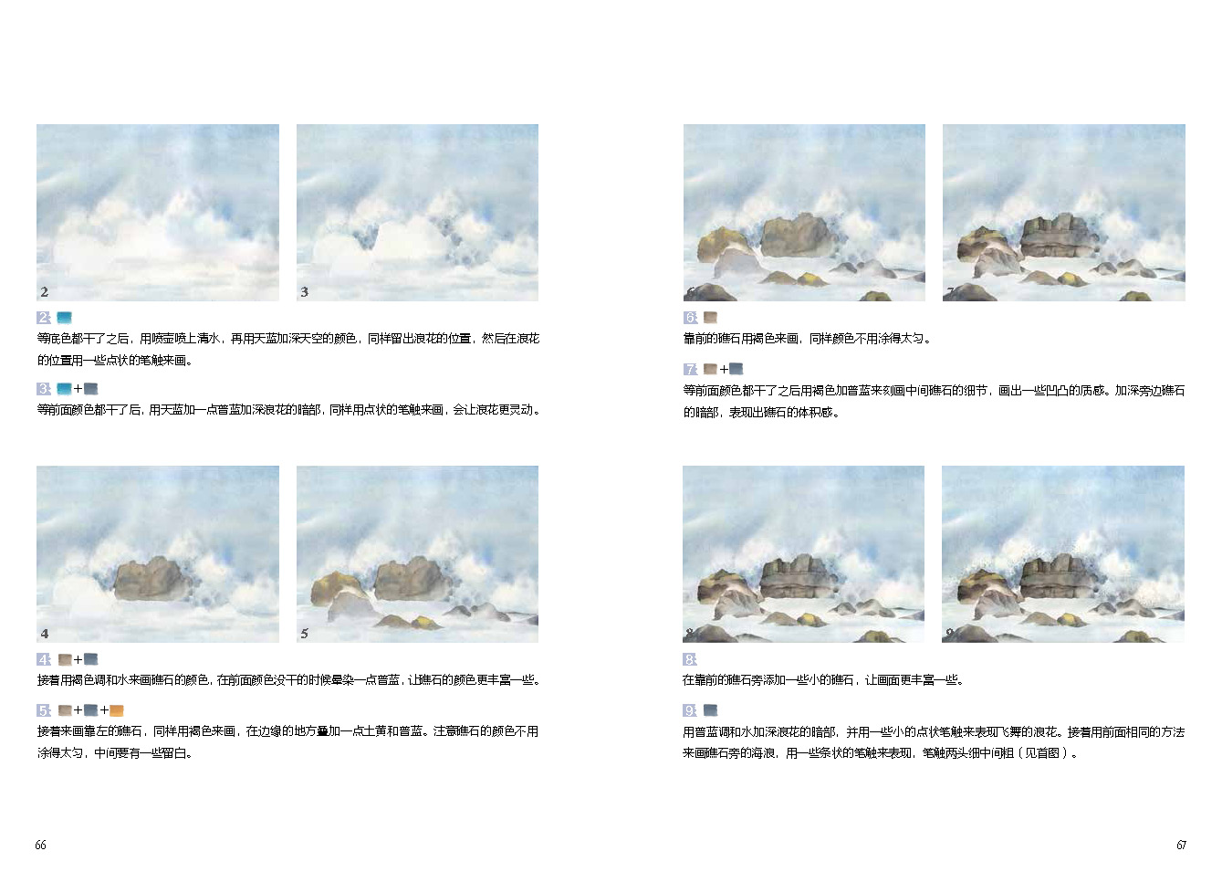 1.本書(shū)直擊簡(jiǎn)約水彩風(fēng)景的要義,從基礎(chǔ)學(xué)起,作者在畫(huà)面構(gòu)圖布局、質(zhì)感和層次的表達(dá),一步步教你唯美水彩風(fēng)景的表達(dá)。