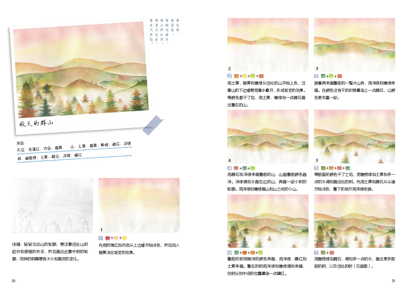 2.在這本書(shū)中案例豐富,從天空、山川、流水、原野、森林等5大方面,涵蓋了多種風(fēng)景。內(nèi)容豐富新穎,色調(diào)清晰明快,畫(huà)法簡(jiǎn)單易操作。