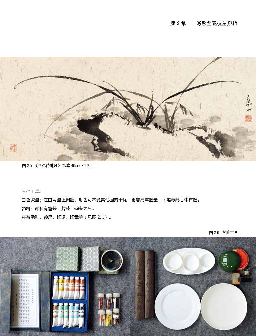 內(nèi)容從“觀蘭”“品蘭”“寫蘭”入手,讓讀者對(duì)蘭花有了情感解讀,到如何選擇繪畫工具,如何用筆、用墨、調(diào)色,各種技法、構(gòu)圖的介紹,從方法到立意,涵蓋了作畫的方方面面。