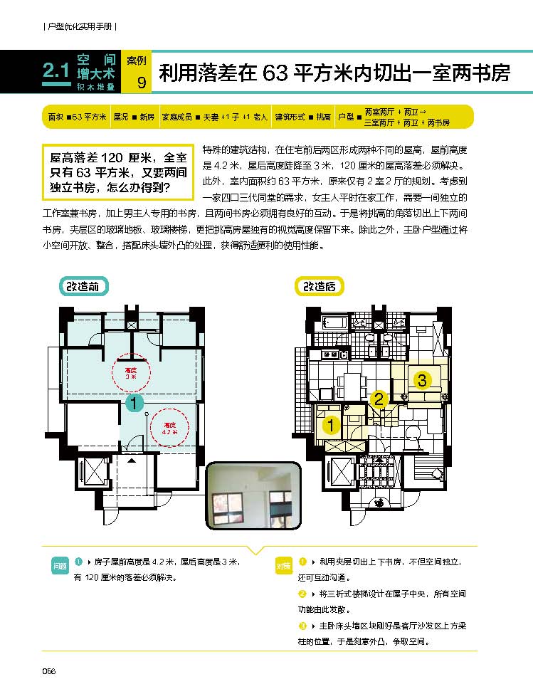 056 案例 9 利用落差在 63 平方米內(nèi)切出一室兩書房