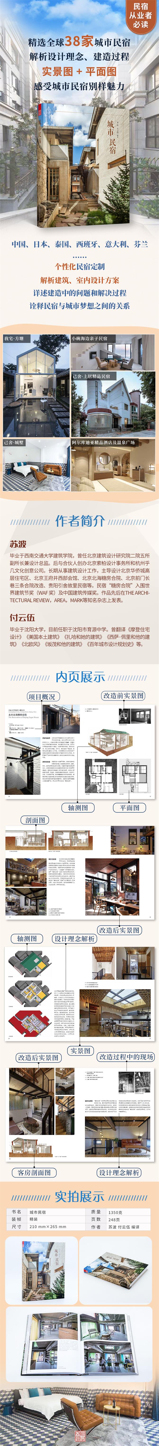 本書精選全球范圍內30余座城市民宿,涉及地域除了中國華北、華東、華南、西北等地區,還包括日本、泰國、西班牙、葡萄牙、捷克、意大利、芬蘭、澳大利亞、巴拿馬等國家和地區的特色民宿,通過展示圖片、設計圖紙以及詳細的文字解析,可以帶讀者領略特色民宿的獨特魅力。