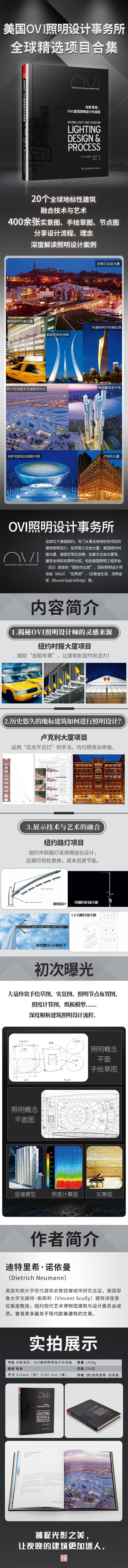★收錄400余張實景圖、設計圖、手繪草圖!首次公布400余張珍貴的實景照片、設計圖紙、手繪圖草圖、電腦模擬計算圖、照明節點布置圖和紙板模型等,細致講解OVI建筑照明事務所的設計精髓。