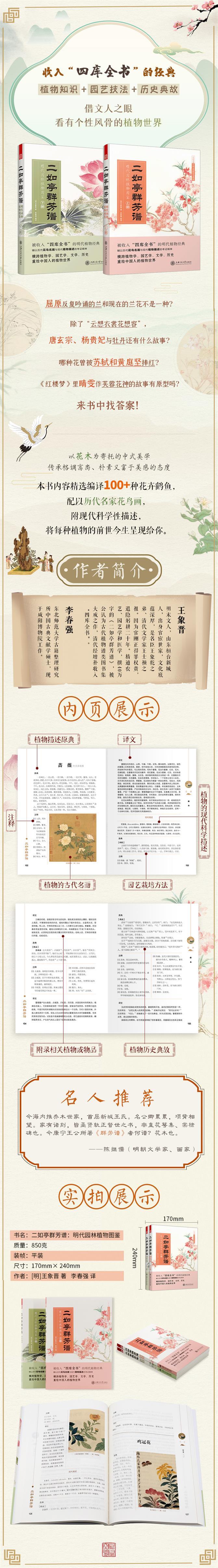 原書內(nèi)容精選編譯,配以種類準確的歷代名家花鳥畫,并附現(xiàn)代科學性描述,使每一種植物跨越古今,呈現(xiàn)前世今生。