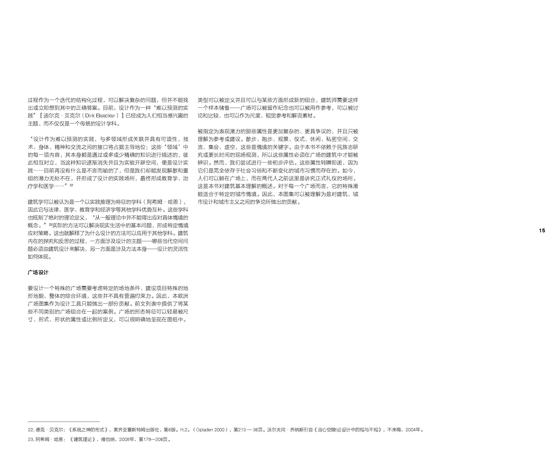 本書中匯編的歐洲廣場均是采用平面圖、立面圖以及軸線圖來描繪的,是一本用來解讀單體建筑和城市建筑空間關(guān)系的圖集。書中以精確的1:5000和1:2500比例尺測繪了歐洲七十個(gè)經(jīng)典的廣場空間,對廣場的歷史沿革、空間特點(diǎn)以及環(huán)境因素做了全面的分析解讀。每個(gè)廣場占四頁篇幅,所包含的圖紙有:總平面圖(圖底關(guān)系圖),地面平面圖,剖面圖和軸測圖。每個(gè)廣場均附簡短的文字說明。在標(biāo)準(zhǔn)格式下呈現(xiàn)每一個(gè)廣場,其尺度、設(shè)施和周邊環(huán)境都具有較高的辨識(shí)度。