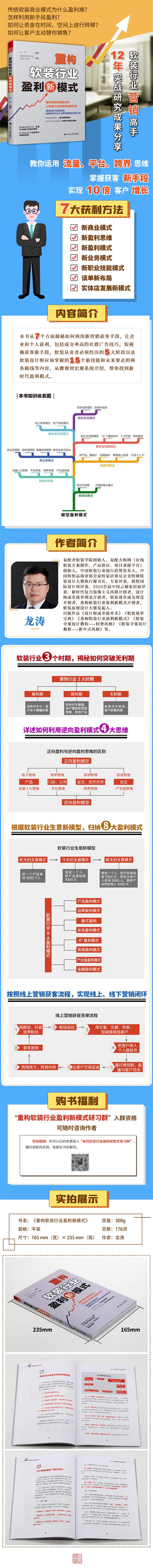 在書中,您將會(huì)看到傳統(tǒng)軟裝行業(yè)商業(yè)模式為什么盈利難,新時(shí)代企業(yè)必須具備的流量、平臺(tái)、跨界的思維,如何讓資金再時(shí)間、空間上進(jìn)行轉(zhuǎn)移,如何讓客戶主動(dòng)替您銷售,高成交率的微信廣告群發(fā)技巧,5G時(shí)代短視頻獲客新手段,軟裝從業(yè)者必須經(jīng)歷的5大階段,以及軟裝設(shè)計(jì)師應(yīng)該掌握的15個(gè)新技能和未來要走的兩條路線。