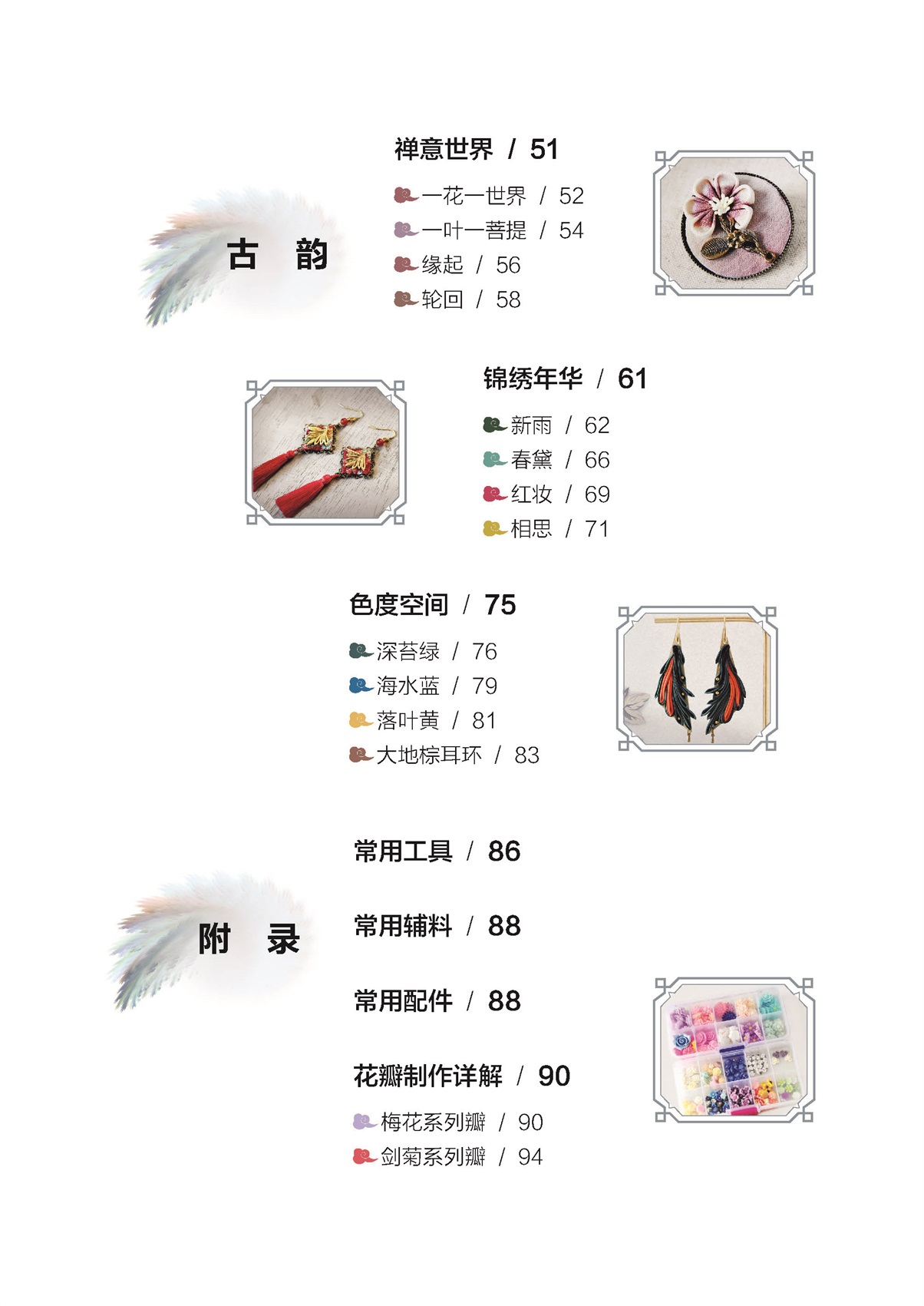 ★6種風(fēng)格24種民族風(fēng)、古風(fēng)的細(xì)工花飾制作方法,案例精美,制作步驟詳細(xì)。