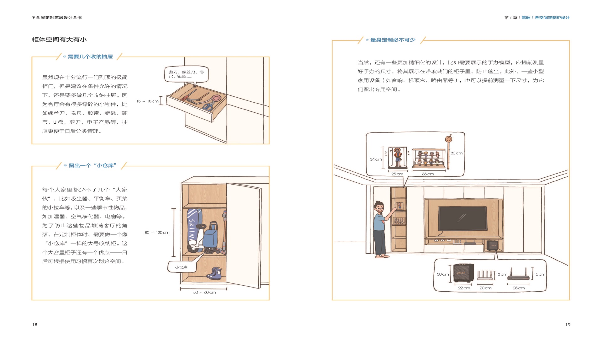 200+手繪插圖,輕松活潑,降低理解門檻,玄關(guān)、客廳、廚房、餐廳和臥室定制柜設(shè)計(jì)詳解,將定制柜設(shè)計(jì)與空間屬性緊密結(jié)合;精心繪制26幅定制柜詳解圖,拿來就能用。