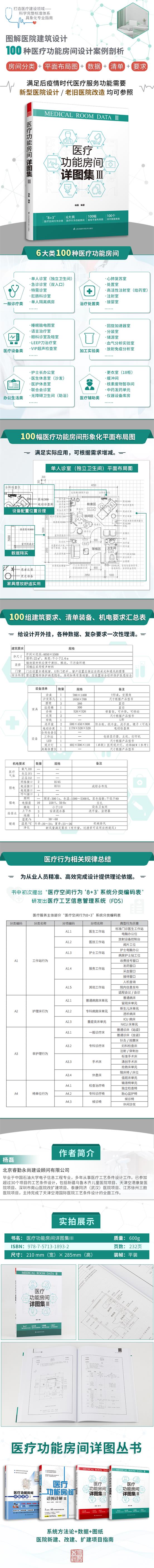 全書共分為三章,第一章闡述了醫療功能房間詳圖設計的理論體系,介紹了醫療工藝設計的“三段論”和“八步法”及醫療信息管理系統。第二章講解了醫療功能房間詳圖在醫院設計中的應用,包括在醫療工藝咨詢和設計中的應用。第三章為本書主體,匯總了100個醫療功能房間,每個房間均包括平面布局圖、建筑要求、裝備清單和機電要求的介紹,直觀展示了各空間所需的面積、尺寸,各醫療設備的擺放位置及需要注意的設計問題,不僅設計師,醫療管理者、實際使用人員等都可以看懂,構建起設計者與使用者的溝通“橋梁”。