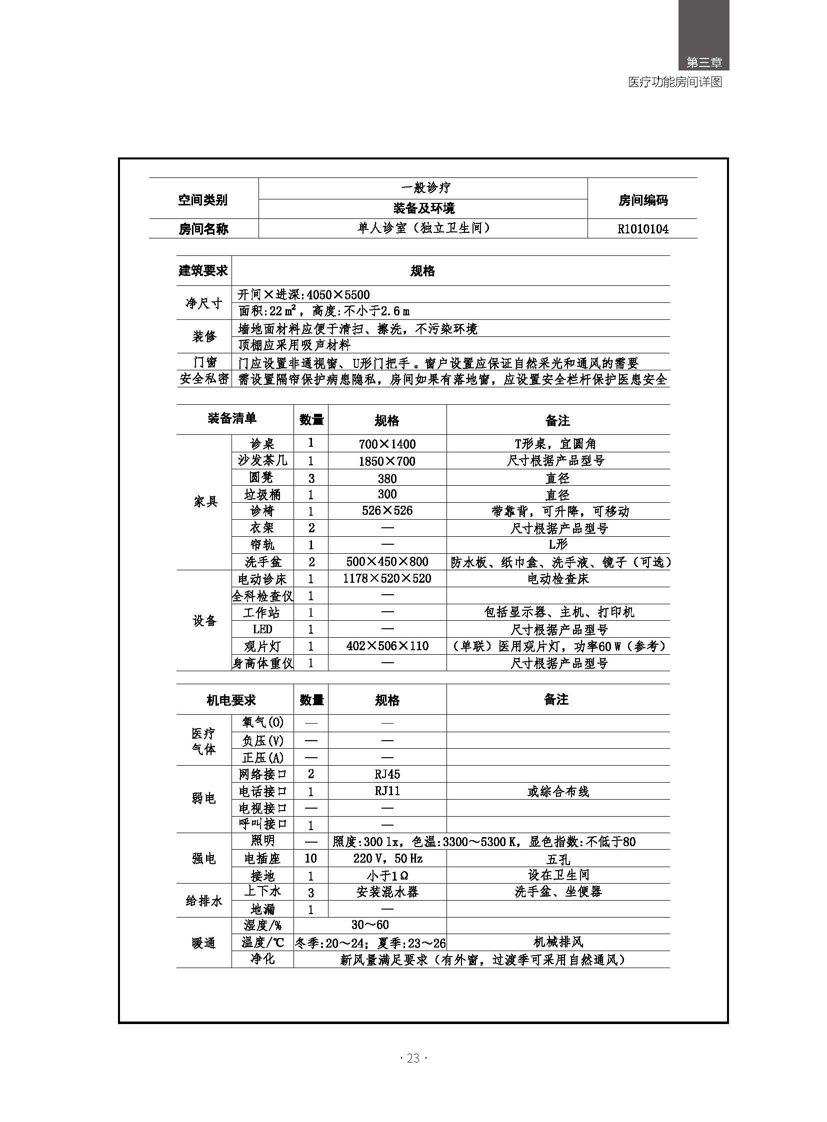 本書主要對醫院各功能房間如診室、病房、辦公、醫技室等通過平面布局圖和具體的設計指標如建筑要求、醫療裝備要求、機電設備要求等進行詳細的匯總和展示,每個房間均有功能說明。
