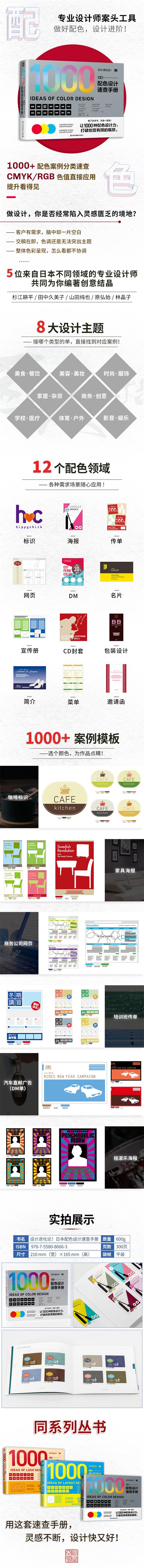 配色是能左右視覺設計的重要元素?!对O計進化論!日本配色設計速查手冊》便是為了急需設計點子的人所編撰而成的配色范例。本書收錄了五位日本各領域頂尖的視覺設計師,展示出 1000 個令人贊嘆的配色范例。