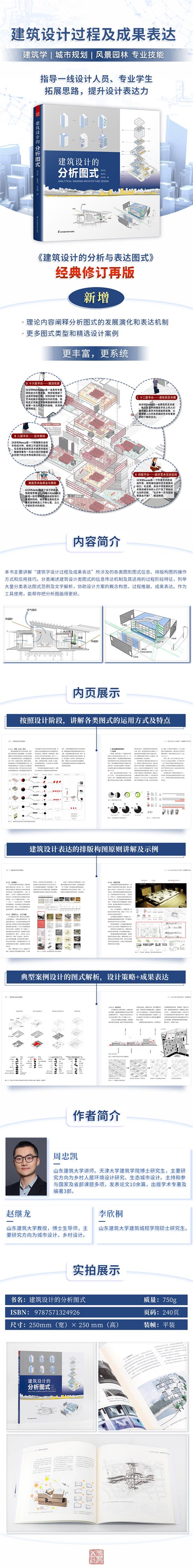 本書詳解了分析圖為什么畫、怎么畫、如何畫的更好,以提高設計表現(xiàn)力。同時通過多學科交叉,借鑒景觀和規(guī)劃專業(yè)分析圖的獨特表達方式,為讀者拓寬思路,以獲得更多建筑設計分析的創(chuàng)意和手法。書中主要圍繞“建筑學設計過程及成果表達”所涉及各類圖形圖式信息、排版構圖的操作方式和應用技巧展開。內容編排上,分類闡述了設計表達圖式的重要性及其適用的方式、方法,強調設計圖式如何作為有效的思考手段,在建筑設計的不同階段(尤其是前期的設計調研和數(shù)據(jù)分析階段),協(xié)助方案推敲及最終成果表達。