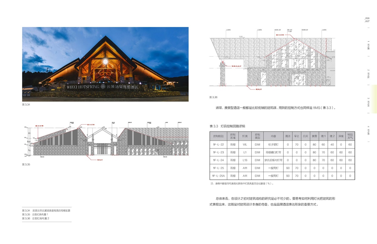 本書從作者多年實踐出發(fā),圖文并茂地介紹了酒店雨棚、大堂、大堂吧、餐飲區(qū)、宴會區(qū)、會議室、康樂區(qū)、行政酒廊、客房區(qū)等9大空間的燈光設(shè)計流程與控制系統(tǒng),使讀者對酒店照明設(shè)計的底層邏輯一目了然。各區(qū)域均展示了燈具布置圖、面板示意圖、燈光模擬控制圖,具象化了解酒店照明的技術(shù)與應(yīng)用。