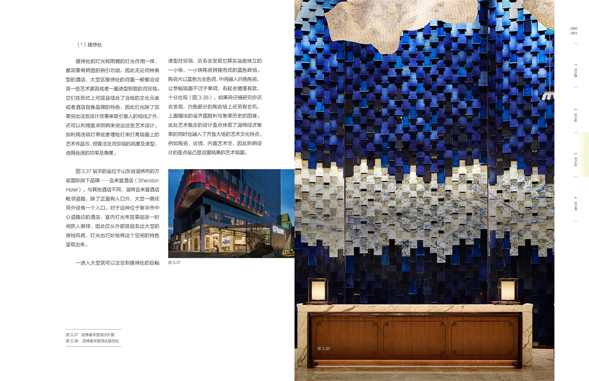 本書通過對酒店9大空間及不同功能房間的照明設(shè)計及控制系統(tǒng)分別詳解介紹的形式,圖文并茂的對酒店照明設(shè)計進(jìn)行了總結(jié)與展望。具體包括酒店常規(guī)雨棚、高端商務(wù)型酒店雨棚、度假型酒店雨棚,大堂,大堂吧,全日餐廳、中餐廳、特色餐廳的餐飲區(qū),宴會前廳、宴會廳,會議室,健身房、瑜伽室、游泳池、更衣室、水療室、棋牌及桌球室、兒童活動中心等康樂區(qū),行政酒廊,客房區(qū)的標(biāo)準(zhǔn)房(大床房和雙床房)、普通套房、總統(tǒng)套房、客房衛(wèi)生間、客房走道及電梯廳等。既具有系統(tǒng)的理論知識,又有豐富的實際操作案例。