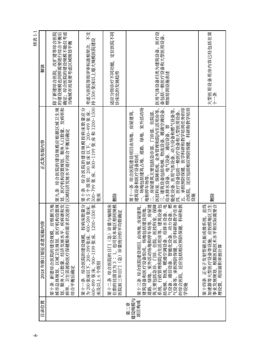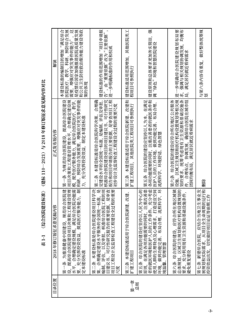 2/ 1.1 《綜合醫院建設標準》(建標110—2021)與2018 年修訂版征求意見稿內容對比